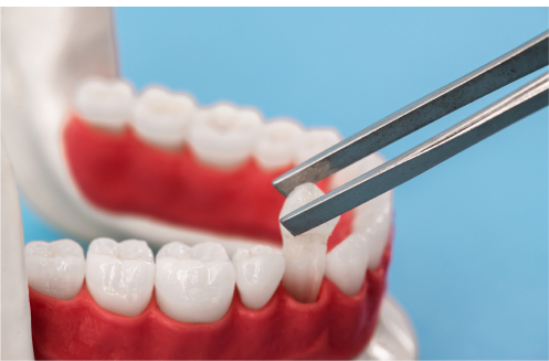 The resin is applied in layers to the tooth, shaped carefully, and sculpted to the desired form.