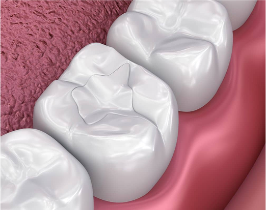 Lab-made ceramic inlays for large cavities that are too big for regular fillings but don’t require a full crown.